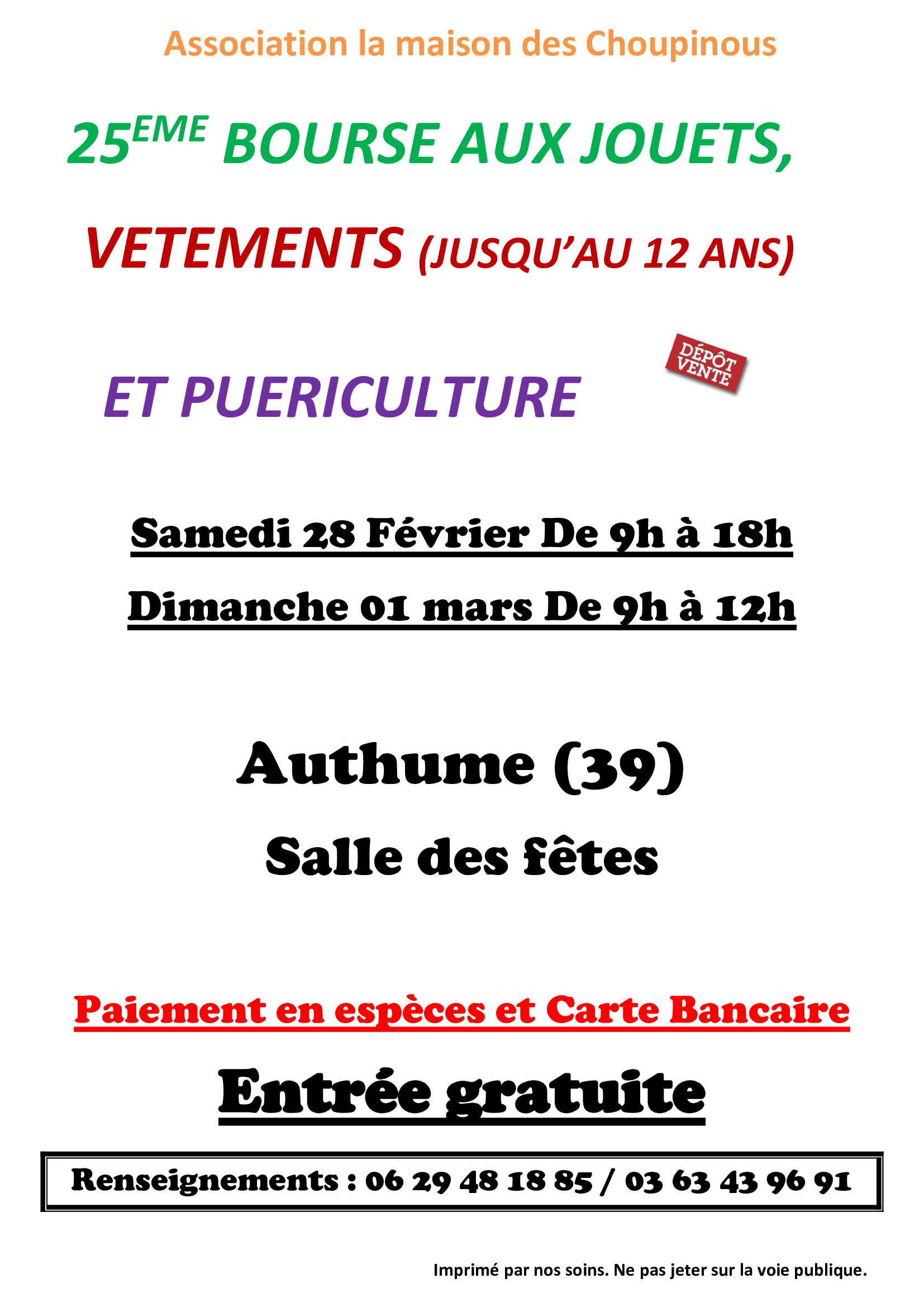 Nous fournissons les étiquettes et les listes d'articles à venir chercher avant la bourse du lundi au vendredi de 8h à 17h à l’adresse suivante : 2 rue de la Marsotte 39100 Authume sauf jour férié.