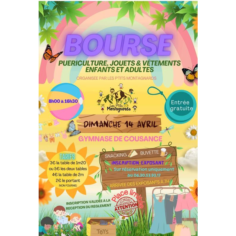 Bourse de puériculture, jouets et vêtements enfants organisée par les p'tits montagnards avec snacking et buvette