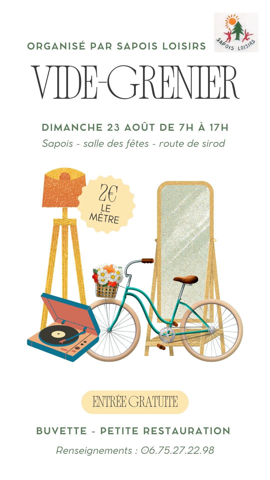 12ème vide grenier organisé par l’association Sapois Loisirs le dimanche 23 aout 2026