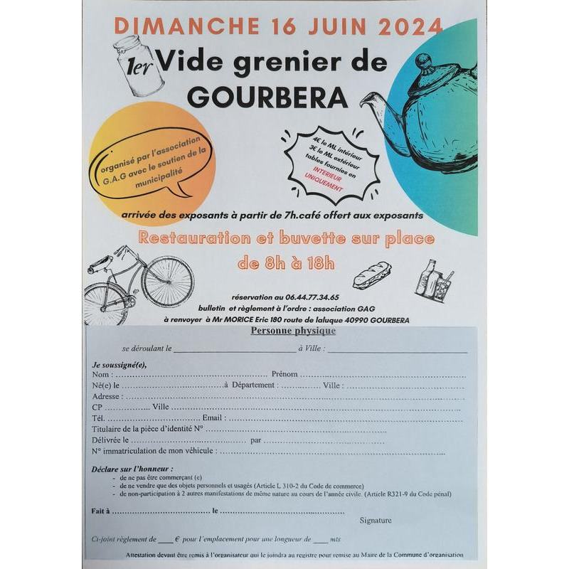 Vide grenier en intérieur et en extérieur proposé par l'association G.A.G ( groupe animation gourberasien).