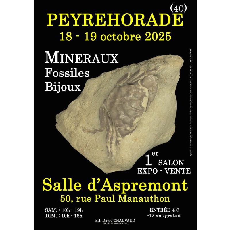 Hexagone mineral vous donne rendez-vous les 18 et 19 octobre 2025 à peyrehorade pour le 1er salon des minéraux fossiles et bijoux. Cet événement se déroulera dans la salle polyvalente d'aspremont située rue paul manauthon à proximité de la mairie. Pour animer cet événement, des exposants professionnels et amateurs originaires des quatre coins de france seront au rendez-vous ! Ils présenteront au public leurs dernières nouveautés en provenance du monde entier, de france mais aussi du grand sud-ouest. Comme dans tous nos salons, un très large choix de minéraux, fossiles et bijoux sera proposé à la vente pour le plus grand bonheur des petits et des grands. Pour répondre toujours plus aux attentes du public, un service d'expertise gratuite sera aussi proposée par l'organisateur à celles et ceux qui souhaitent faire déterminer leurs découvertes minéralogiques ou paléontologiques. Ce salon devrait attirer de très nombreux passionnés tout en sensibilisant les néophytes et les plus jeunes aux merveilles de la terre.