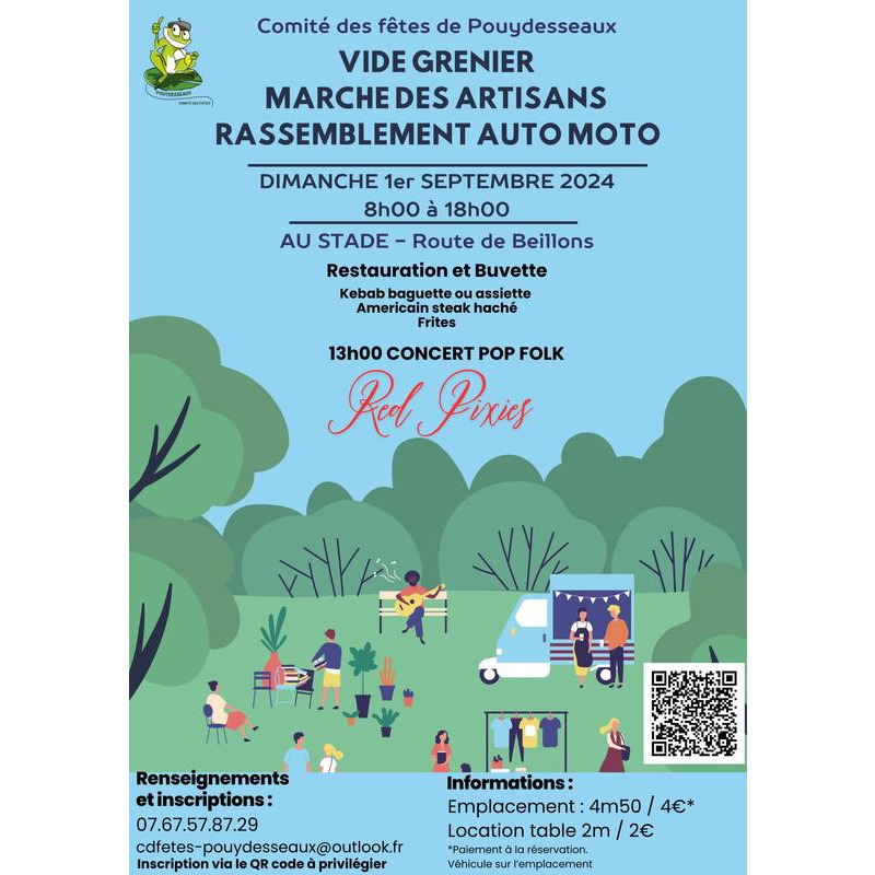 Venez profiter des bonnes affaires du vide grenier, découvrir les produits de nos artisans, admirer les belles mécaniques et vous déhancher sur les rythmes pop folk du duo féminin les red pixies (bordeaux)