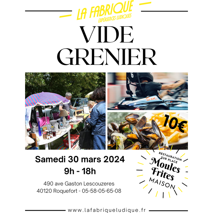 Vide grenier + animation moto enfants + repas moules frites samedi 30 mars