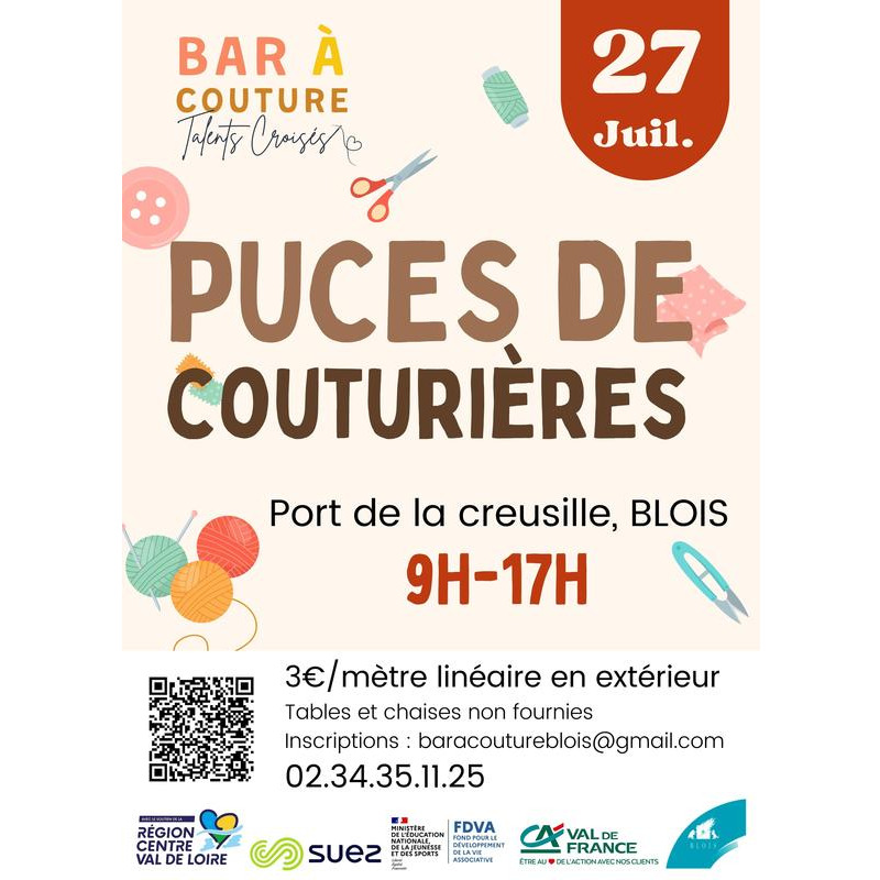 L’association talents croises bar à couture organise à blois, pour la 2ème année consécutive, les puces de couturières ! Rendez-vous le dimanche 27 juillet de 9h à 17h au port de la creusille.
