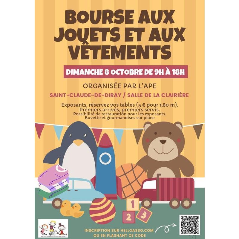 Bourse aux jouets et vêtements organisée pour l'association des parents d'élèves de saint claude de diray