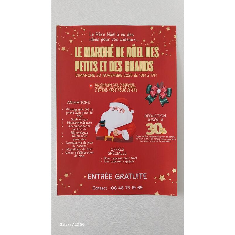 Photographe avec fond de noël sur place, vente de jouets, maquillage, stands bien-être etc