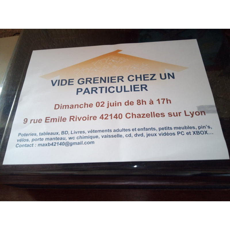 Particulier organise un vide maison le dimanche 2 juin de 8h a 17h au 9 rue émile rivoire 42140 chazelles-sur-lyon a vendredi : meubles, poteries, tableaux, bandes dessinées, livres, pins, vêtements ect ..