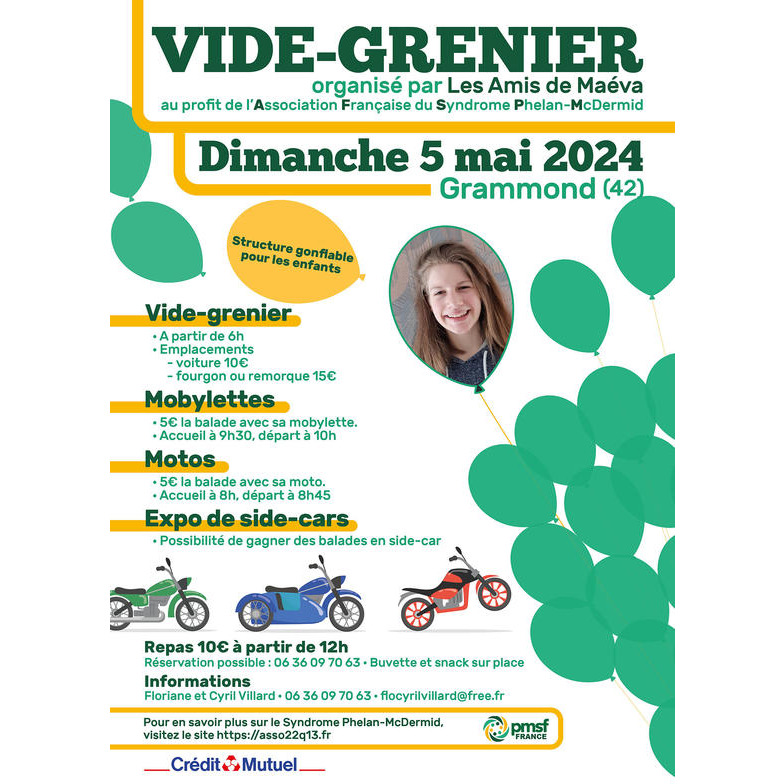 Grand vide-grenier organisé au profit de l'association française du syndrome phélan-mcdermid, syndrome dont est atteint maéva.