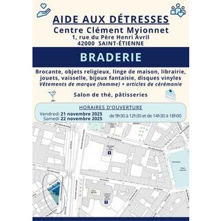 Nombreux stands:brocante, objets religieux, linge de maison,librairie,jouets ,vaisselle,bijoux fantaisie,disques vinyles