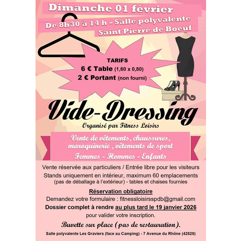 Vente de vêtements, chaussures, maroquinerie, vêtements de sport, femmes-hommes-enfants. Vente réservée aux particuliers / stands uniquement en intérieur.
