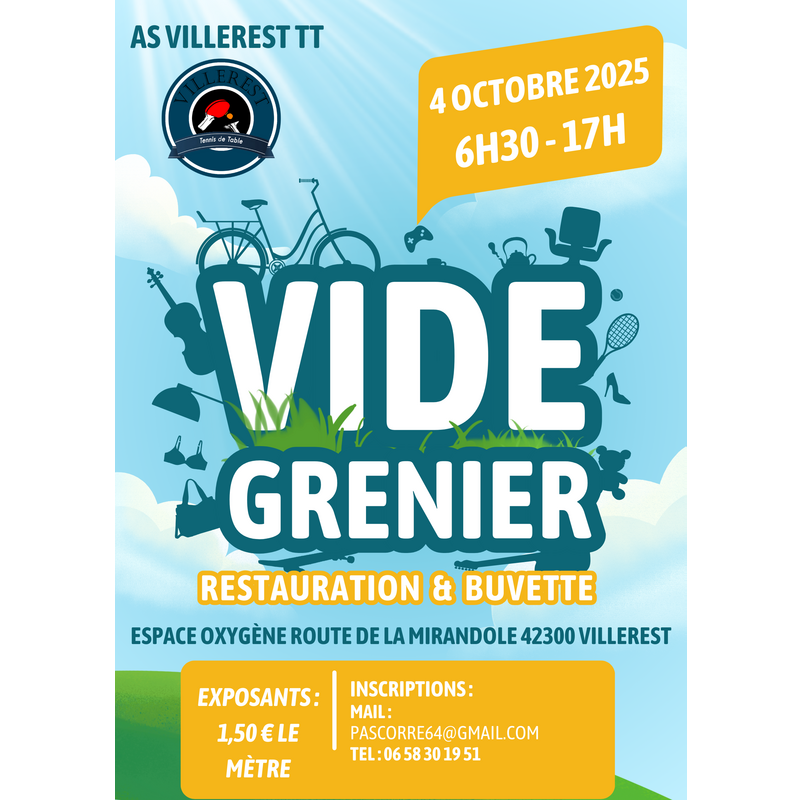 L'as villerest tt organise son deuxième vide grenier. Le dernier avait été une réussite totale avec beaucoup d'exposants ayant joué le jeu.