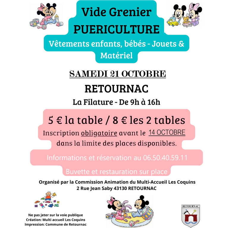 Vide grenier puériculture (matériel, vêtements, jouets...) organisé par la commission animation du multi accueil les coquins