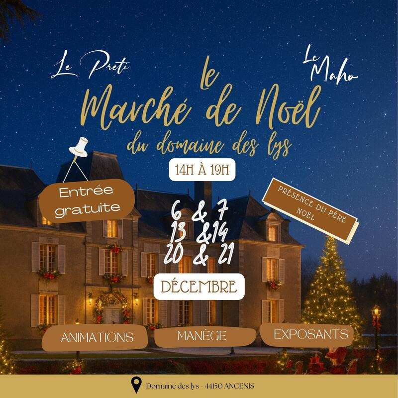 Marché de noël du domaine des lys : animations, manège, exposants, présence du père noël.