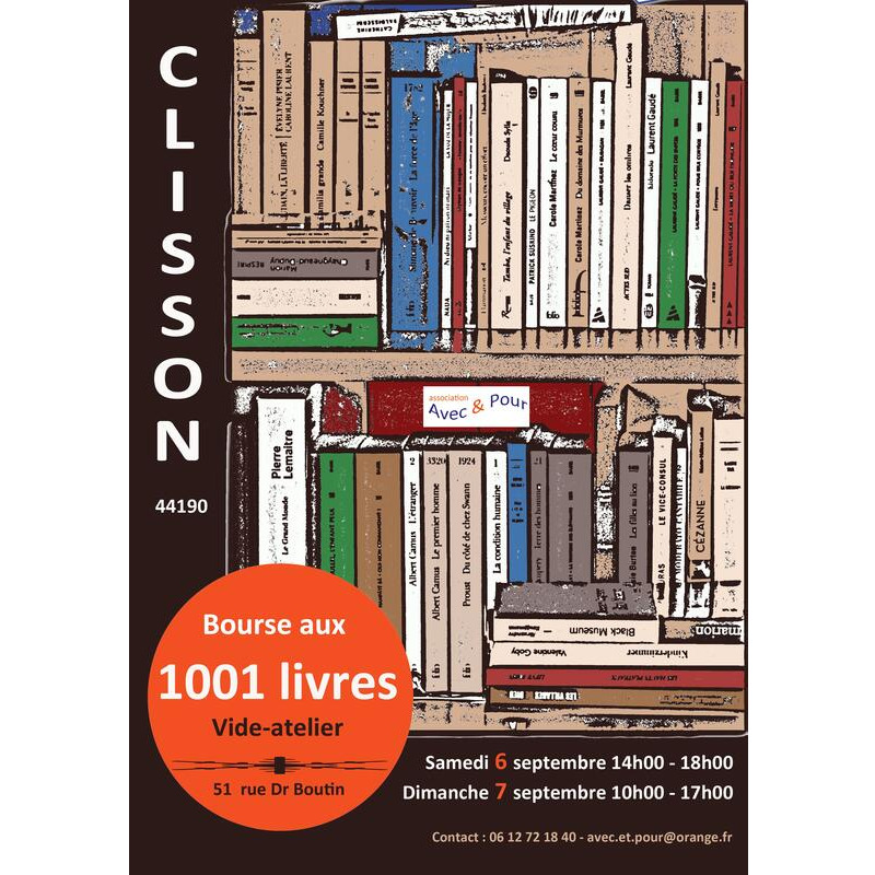 L'association avec&pour organise une grande bourse aux livres puisqu'elle proposera au moins 1001 livres ainsi qu'un vide-atelier le samedi 6 de 14h à 19h et le dimanche 7 septembre de 10h à 17h. Entrée gratuite