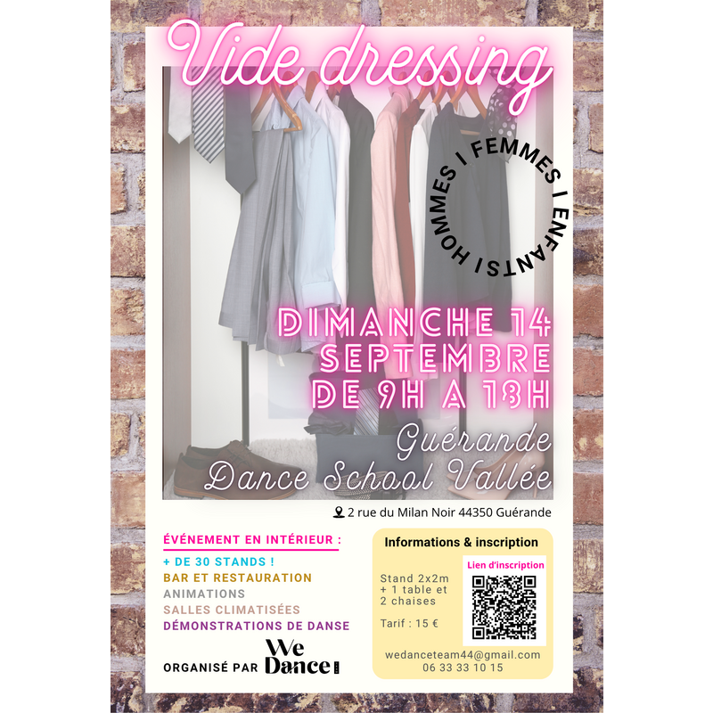 bonjour à tous, l’association de danse we dance team organise un vide dressing le 14 septembre prochain.