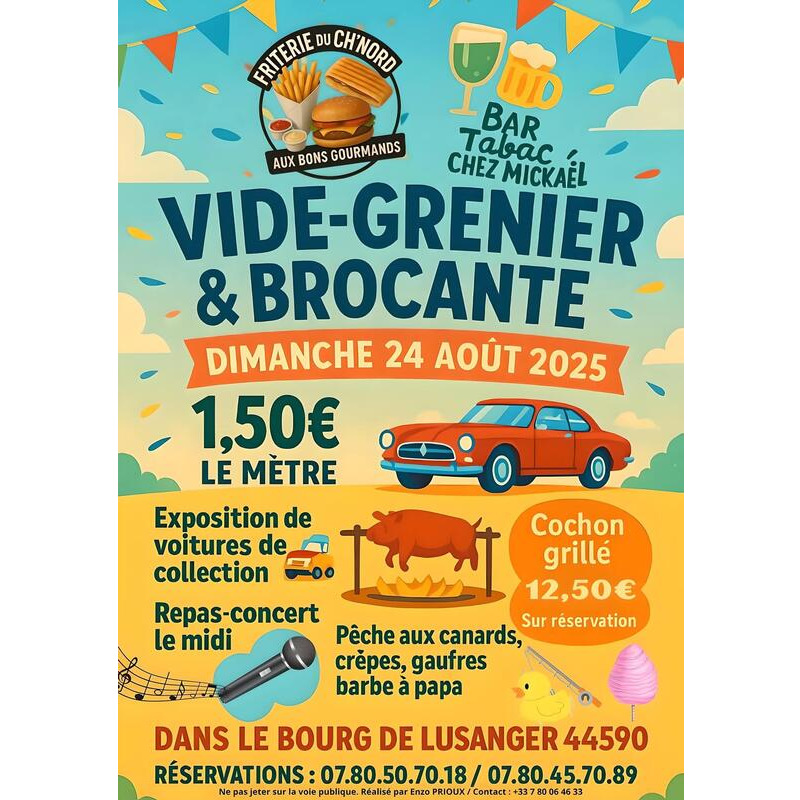 Brocante/vide grenier avec repas concert "cochon grillé) et concert de billy ze kick. Dans tout le centre bourg. À partir de 06h00 jusque 18h30.