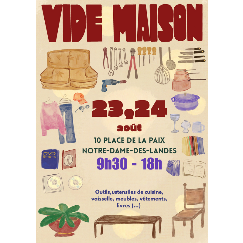 Grand vide maison : livres, vêtements, meubles, vaisselle, ustensiles de cuisine, matériel de cuisine pro, quincaillerie, outils....