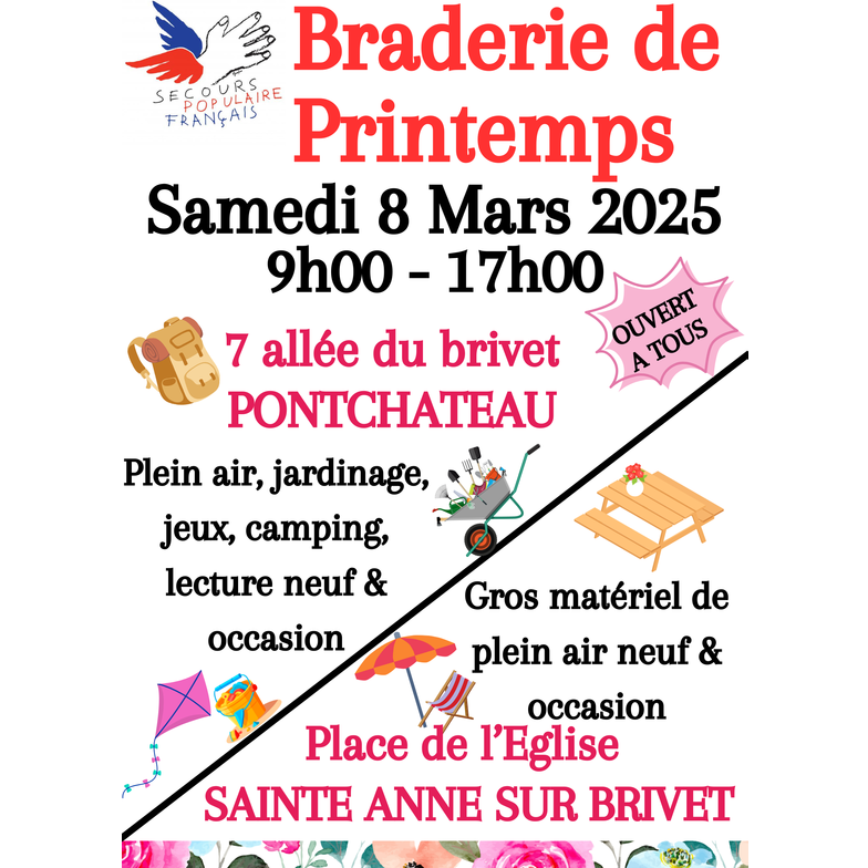 Braderie de printemps : plein air, jeux, jardinage, camping etc