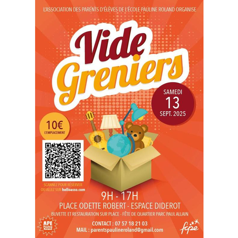 L'association des parents d'élèves de l'école pauline roland organise un vide-greniers le samedi 13 septembre 2025 de 9h00 à 17h00.