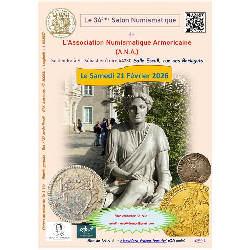 L'association numismatique armoricaine organise son 34eme salon annuel. Nous vous attendons nombreux.