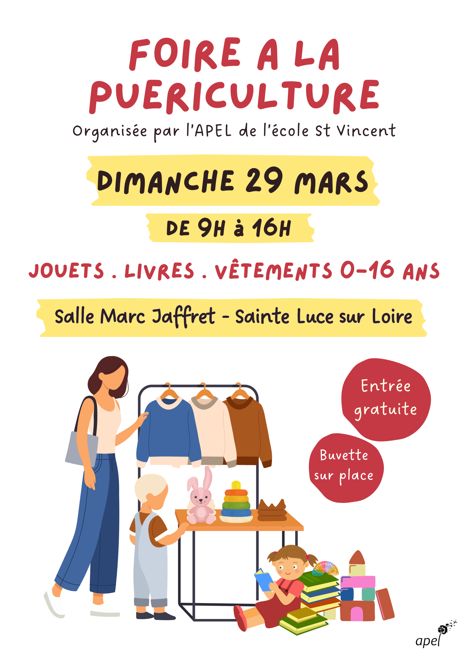 L’APEL de l’école organise la 4ᵉ édition de sa bourse aux jouets, vêtements, livres et matériel de puériculture !