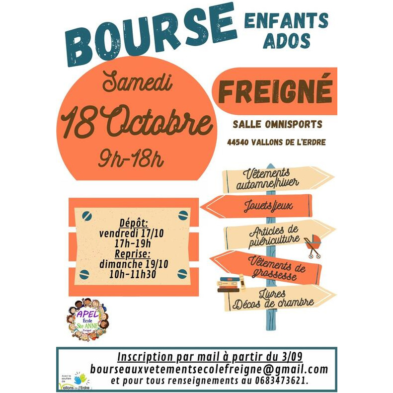 Bourse enfants / ados : vêtements automne hiver, jouets, livres, puériculture, décos de chambre, maternité...