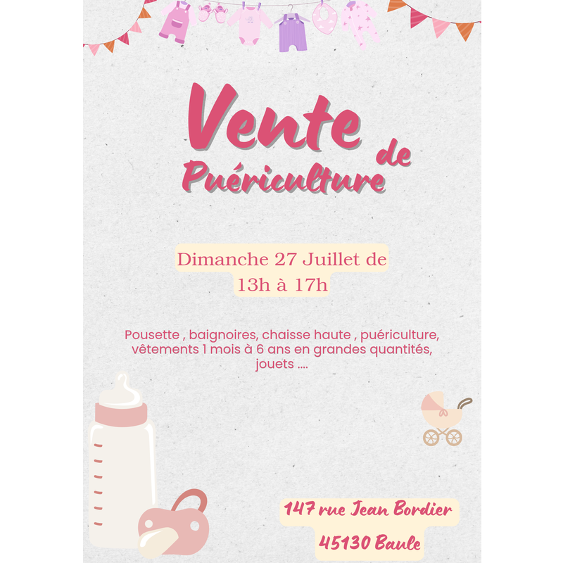 Puericulture ( pousette , baignoire , chaisse haute ..) , vetements de 1 mois à 6 ans ( fille) toutes saisons .