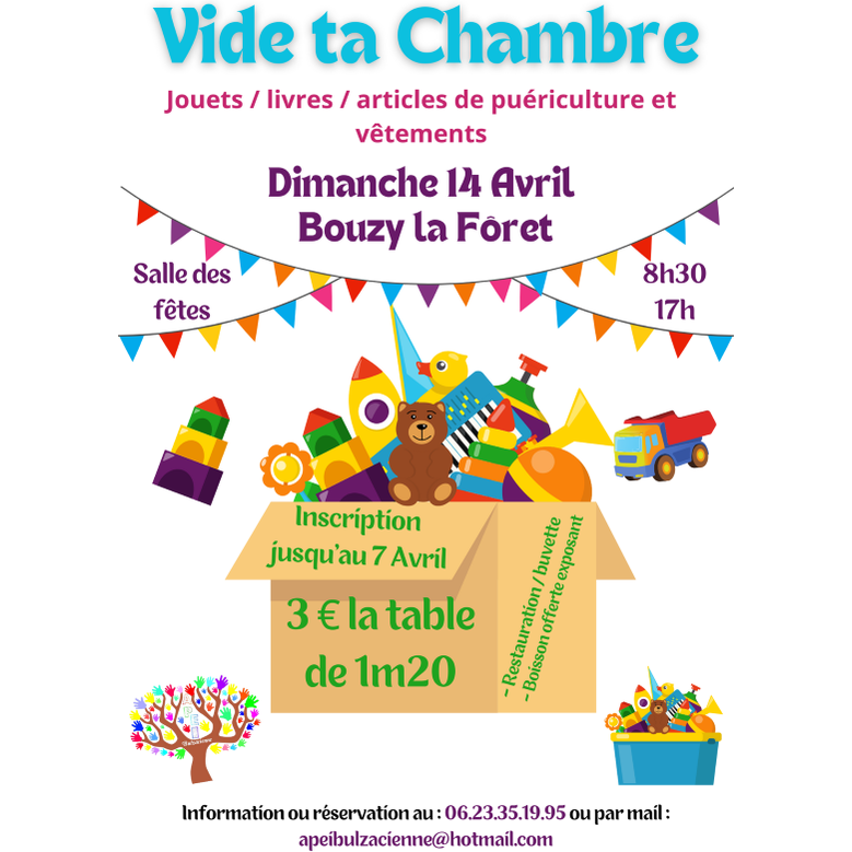 Bourse aux jouets/livres/articles de puériculture/vêtements organisée par l'association des parents d’élèves de l'école primaire robert goupil à bouzy-la-forêt.