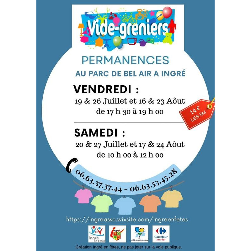 Grand vide-grenier au parc de bel air avec restauration, manège et wc. Feu d'artifice le soir à 23h