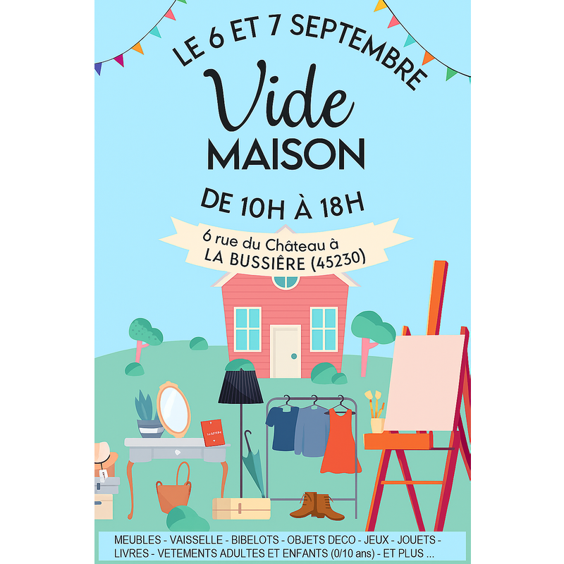 Meubles, vaisselle, bibelots, objets déco, jeux, jouets, livres, vêtements adultes et enfants (0/10ans) et plus...