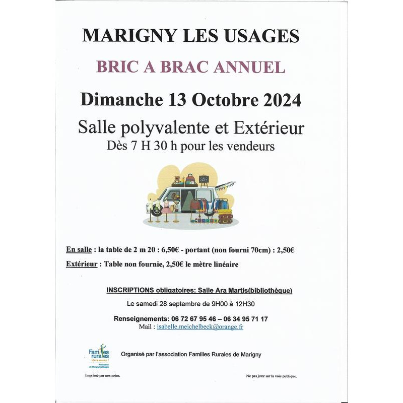 Bric à brac organisé par familles rurales de marigny les usages - en salle et en exterieur
