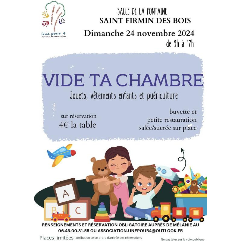 L'association des parents d'élèves du regroupement scolaire organise un vide ta chambre. Venez faire de bonnes affaires en puériculture, vêtements enfants et adolescents ainsi que jouets.