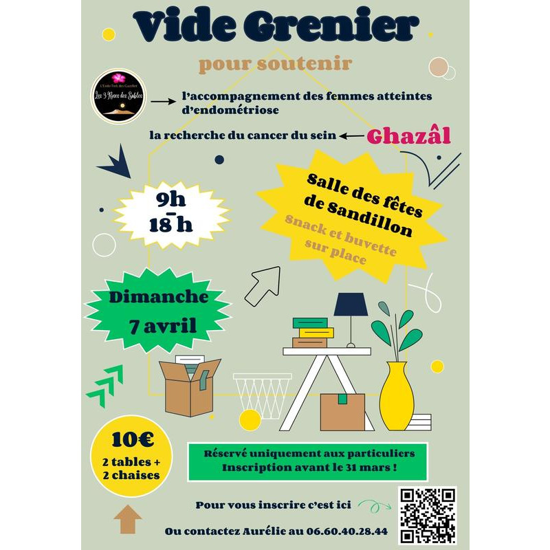 Nous sommes deux associations les 3 roses des sables et ghazâl qui s'unissent et organisent leur 1er vide grenier en soutien aux femmes atteintes d'endométriose et du cancer du sein