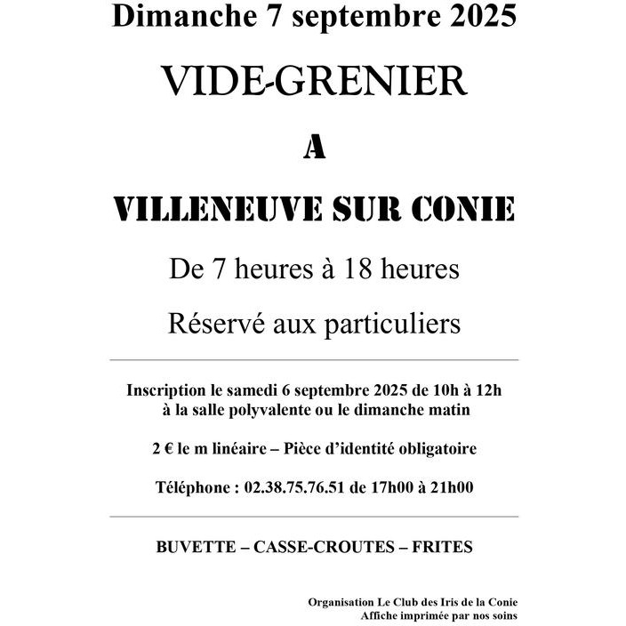Dimanche 7 septembre de 6h00 à 18h00 à villeneuve sur conie (loiret) : vide-grenier
