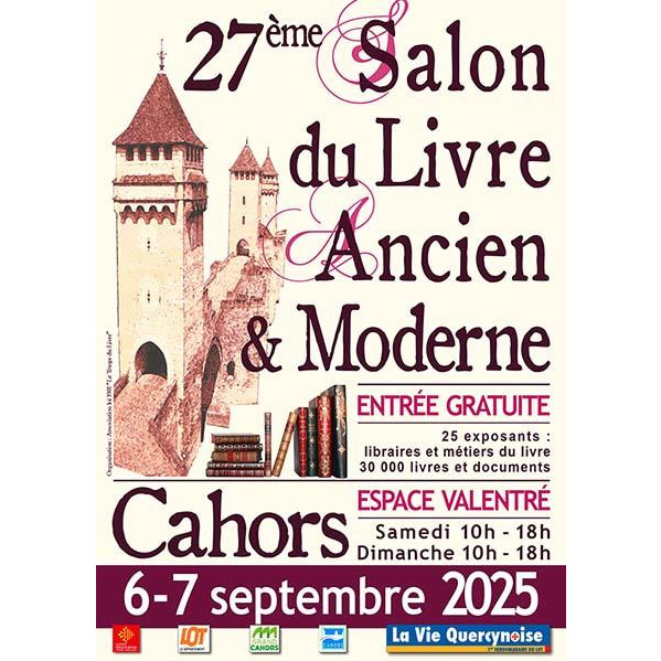 Le 27ème salon du livre ancien et moderne de cahors se tiendra à l’espace valentré les samedi 6 et dimanche 7 septembre 2025. L’entrée de ce grand rendez-vous de midi-pyrénées des amateurs de livres anciens et modernes est entièrement libre et gratuite. 25 exposants et exposantes, libraires de livres anciens et d’occasion venu·es de toute la france, présenteront une sélection de plus de 30 000 livres et documents curieux ou rares.