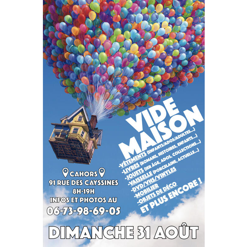 nous vous proposons avec mon frère de venir profiter d'un grand vide maison que nous effectuons le dimanche 31 août à partir de 8h toute la journée jusqu'à 19h !