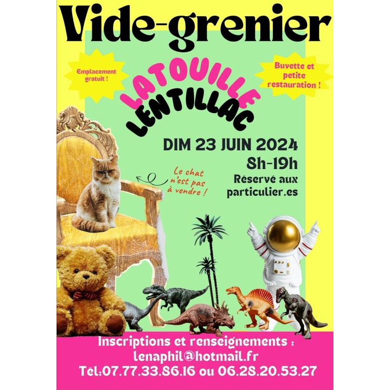 Premier vide grenier d'été à latouille lentillac ! Sur la place de l'église et de la mairie, venez passez un super moment à chiner. Parking, zone de gratuité, buvette et petite restauration sur place.