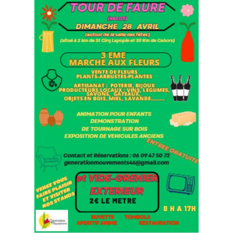 Vide grenier et marché aux fleurs plantes plants produits locaux artisanat poterie déco bijoux vins légumes miel lavande huile .......