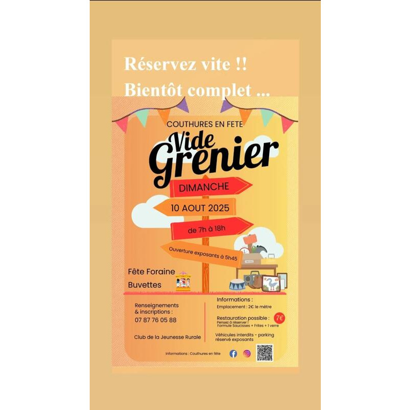 Vide grenier de la fête, possibilité de ce restaurer le midi: avec une formule( saussices+ frites + 1verre 7euros ) buvette, fête foraine.
