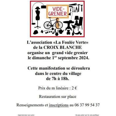 L'association "la foulée verte" organise un grand vide grenier le 01 septembre 2024 dans le centre du village.