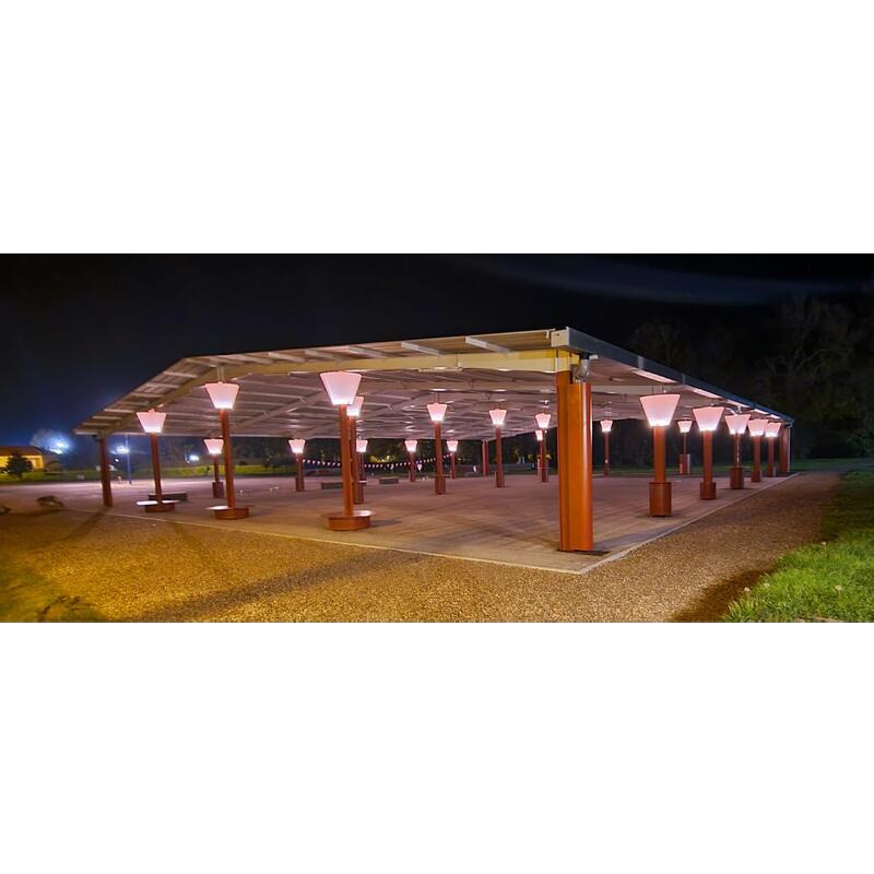 Esplanade du centre culturel, sous la nouvelle halle.