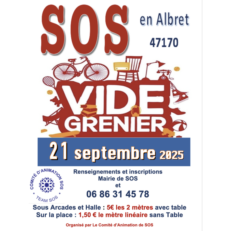 Vide grenier de septembre du comité d'animation de sos