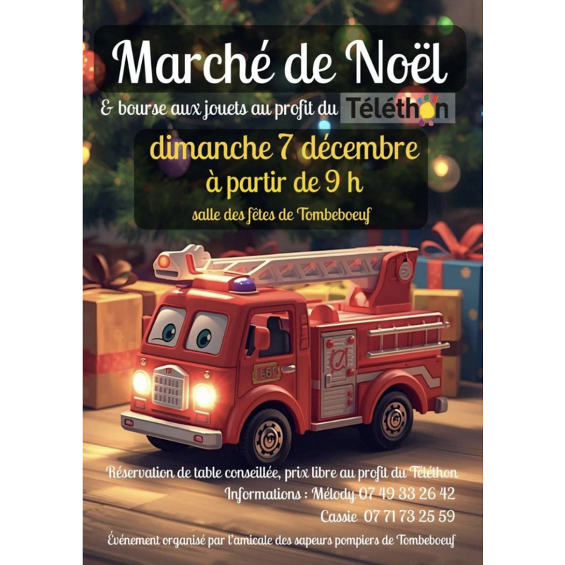 Marché de noël et bourse aux jouets au profit du téléthon organisés par l'amicale des sapeurs pompiers.