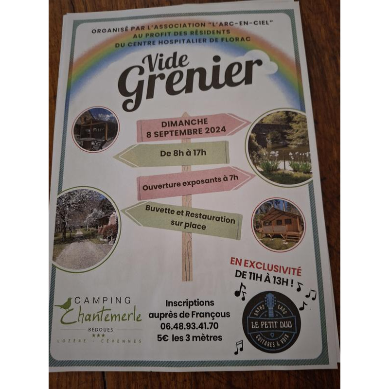 Vide grenier au profit des résidents du centre hospitalier de florac. Restauration sur place .Animation musicale.