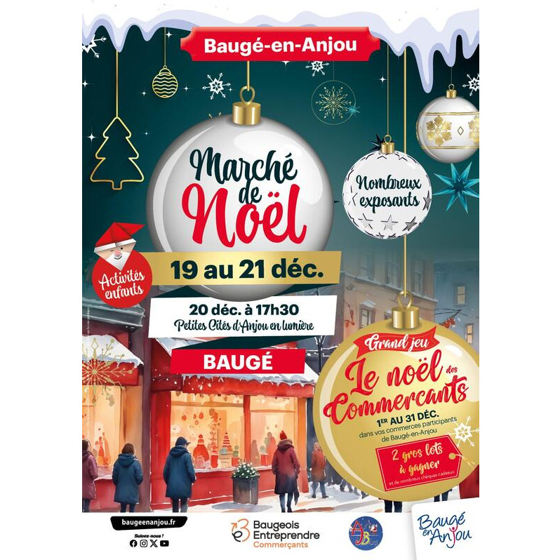 Le traditionnel marché de noël de baugé s’annonce féérique du vendredi 19 au dimanche 21 décembre 2025 au centre culturel rené d'anjou à baugé. De nombreux commerçants, viticulteurs, producteurs et artisans seront présents.