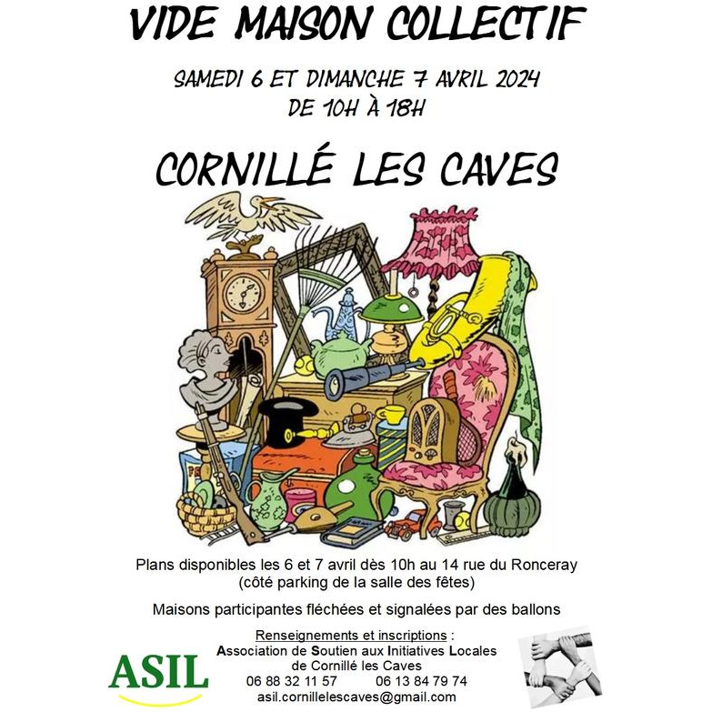 Les samedis 6 et dimanche 7 avril de 10 h à 18 h plusieurs habitants de cornillé les caves dans le maine loire organise u un vide maison collectif