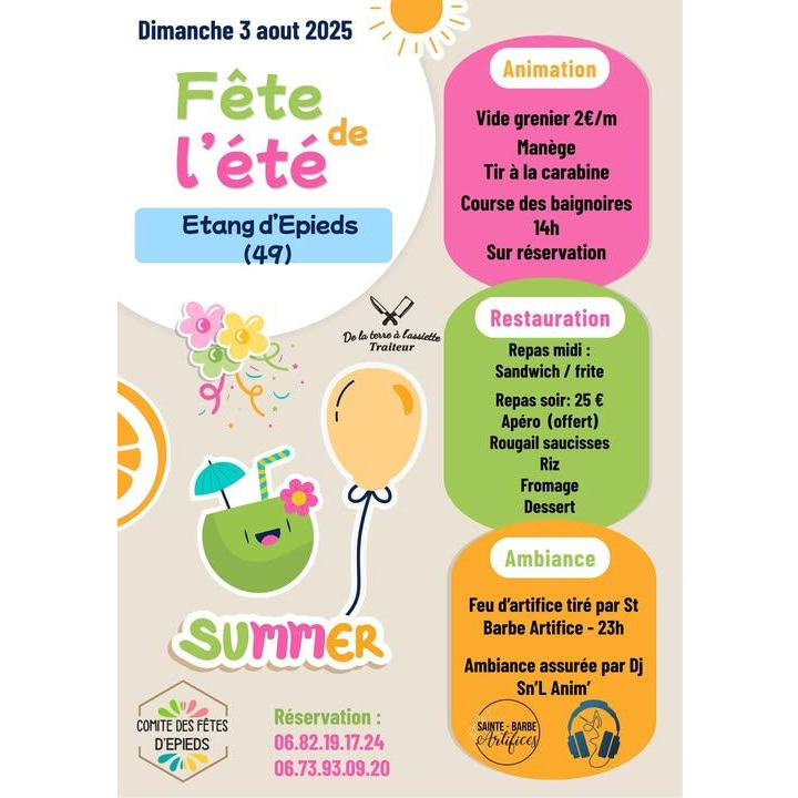 Vide grenier toute la journée, animation course des baignoires sur l'étang en équipes, manèges pour enfants, stand de tir.