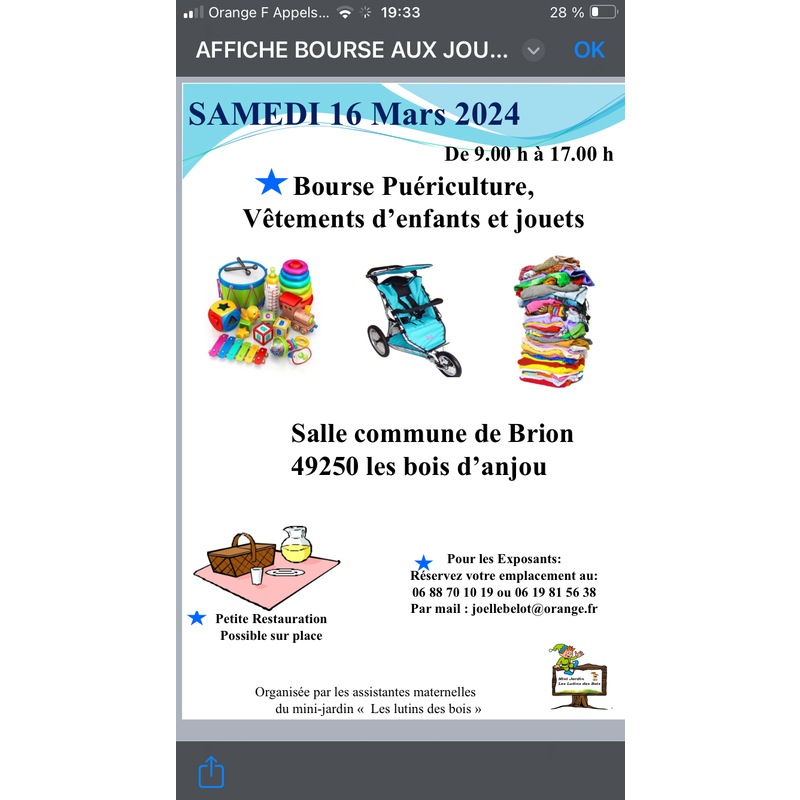Les nounous des petits loups organisent une bourse puériculture, vêtements d'enfants et jouets à brion.