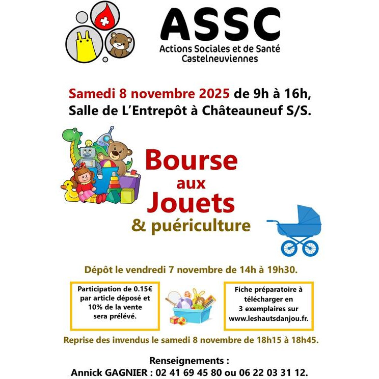 L’A.S.S.C. (actions sociales et de santé castelneuviennes) organise sa bourse aux vêtements hiver le samedi 9 septembre 2023, de 9h à 12h et de 13h30 à 16h