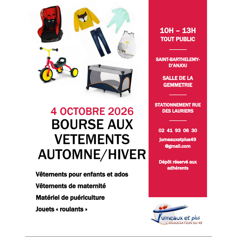 Vente de vêtements enfants et ados (jusqu'au l), vêtements de maternité, matériel de puériculture et jouets roulants.